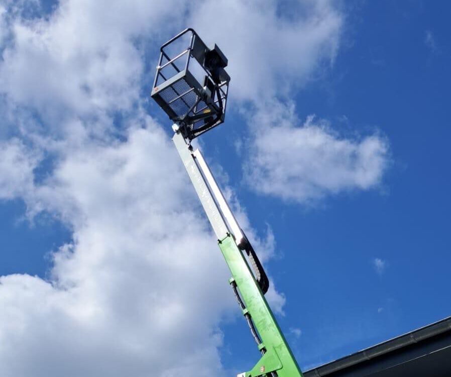 Unser Team ist geschult im Umgang mit einem kleinen Bagger und einer Arbeitsbühne. Unsere ausfahrbare Arbeitsbühne ermöglicht sicheres und effizientes Arbeiten in bis zu 12 Meter Höhe. Mit einer Tragkraft von 200kg eignet sie sich ideal für Installations-, Reinigungs-, Wartungs- und Montagearbeiten an schwer zugänglichen Stellen.
